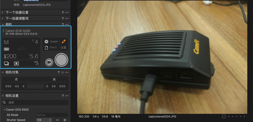 4. 打开 Capture One,此时就可以使用 Capture One 联机拍摄功能。相机连接到 Capture One 可能需要等待片刻。