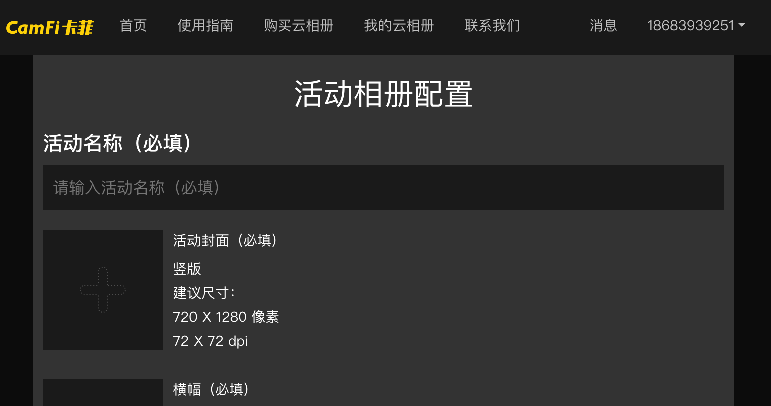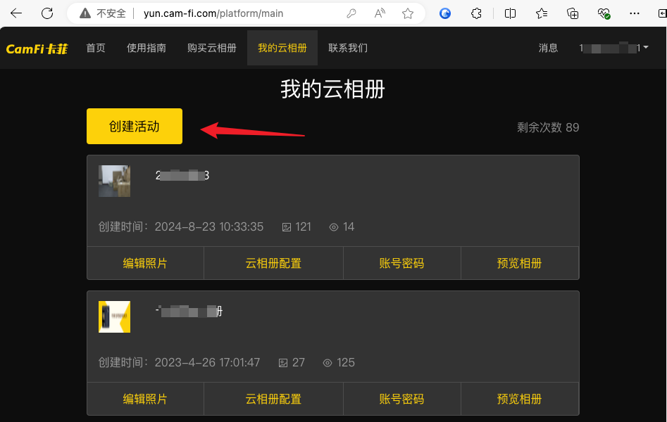 首先需要购买卡菲云相册次数,购买入口: http://yun.cam-fi.com/platform/order